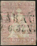 | Zusatzinformationen und Suchstichworte: | 108. Briefmarken Lenz Auktion Auktionstermin: 29. April - 5. Mai 2022 Los 2133 Schweiz 1854, 15 Rp. hellrötlichkarmin, 1. Berner Druck (SH-Nr. 24B1mm.a), guter Markenschnitt: rechts oben kurz berührt, sonst allseits voll- weissrandig, kurzes Trennschnittchen rechts oben, rückseitig Randspalt. Entwertung: schwarzer K2 "AARAU 7.6.57.N.". Farbfrischer Seidenstrubel, dekorativ entwertet, siehe Attest/Befund Hermann 2014 Ausruf 60,00 EUR |