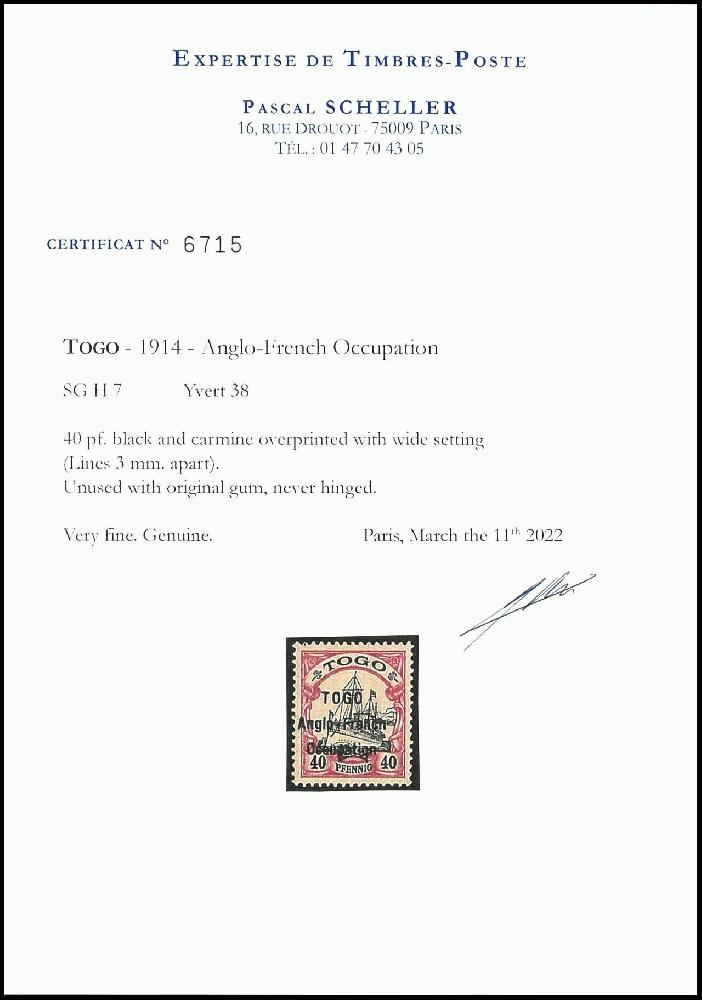 | Prüfgebiet: | Deutsche Kolonien Togo Britische Besetzung |