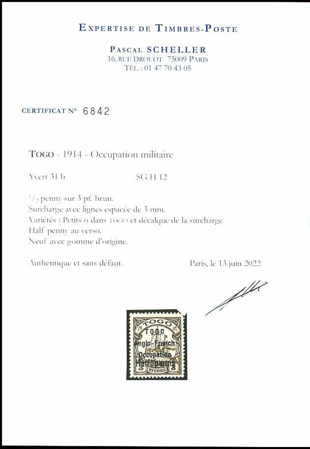 | Prüfgebiet: | Deutsche Kolonien Togo Britische Besetzung |