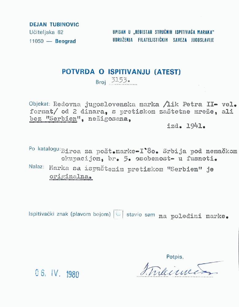 | Prüfgebiet: | Deutsche Besetzung WK 2 Serbien |