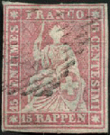 | Zusatzinformationen und Suchstichworte: | 108. Briefmarken Lenz Auktion Auktionstermin: 29. April - 5. Mai 2022 Los 2136 Schweiz 1854, 15 Rp. rötlichkarmin, 1. Berner Druck (SH-Nr. 24B1mm.c), sehr guter Markenschnitt allseits voll- weissrandig. Entwertung: schwarze Eidgen. Raute. Farbfrisch, sauber entwertet, fehlerfrei erhalten, siehe Attest/Befund Hermann 2016 Zuschlag 72,00 EUR |