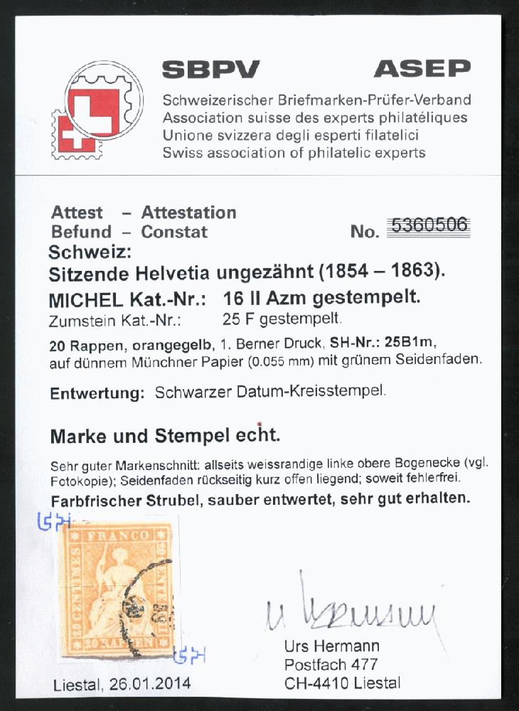 | Prüfer: | Hermann, Urs (SBPV / ASEP (Schweizerischer Briefmarken-Prüfer-Verband)) |