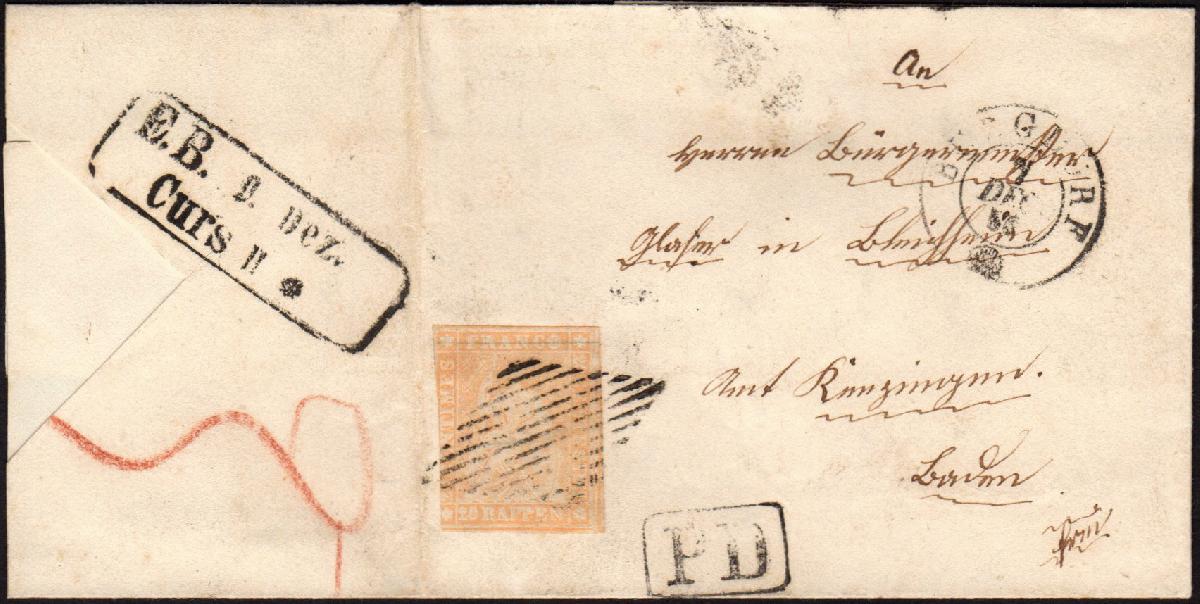 | Zusatzinformationen und Suchstichworte: | 108. Briefmarken Lenz Auktion Auktionstermin: 29. April - 5. Mai 2022 Los 2150 Schweiz 1854, 20 Rp. mittelgelblichorange, 1. Berner Druck (SH-Nr. 25B1m.a), auf Faltbrief von BURGDORF nach BLEICHHENN (GH Baden/D). Linke Randlinie beschnitten, sonst allseits voll- weissrandig, Entwertung Marke mit schwarze Eidgen. Raute, div Stpl.: PD im Kästchen und Dt. Bahnpost: E:B:9. DEZ. Curs II. Druck- und Papierabart. Farbfrischer Seidenstrubel auf attraktivem Kleinbriefchen nach Deutschland, siehe Attest Hermann 2020 Ausruf 100,00 EUR |