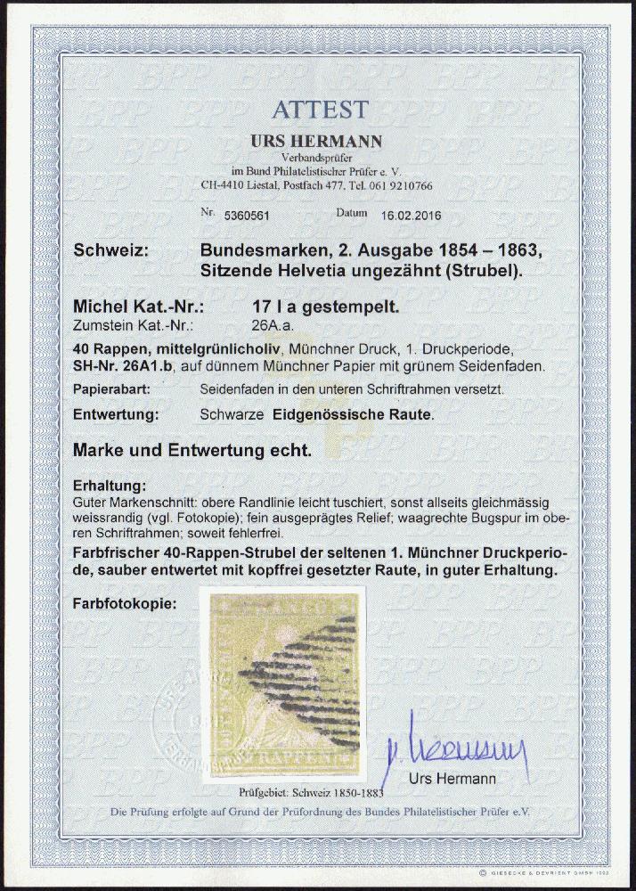 | Prüfer: | Hermann, Urs (BPP (Bund Philatelistischer Prüfer)) |