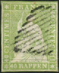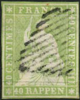 | Zusatzinformationen und Suchstichworte: | 108. Briefmarken Lenz Auktion Auktionstermin: 29. April - 5. Mai 2022 Los 2155 Schweiz 1854, 40 Rp. grünlicholiv, der 3. Druckperiode (SH-Nr. 26A3), Randlinien 3seitig teils beschnitten, oben vollrdg., sauber gest. schwarze Eidgen. Raute, farbfrisch, siehe Attest/Befund Hermann 2014 Ausruf 50,00 EUR |