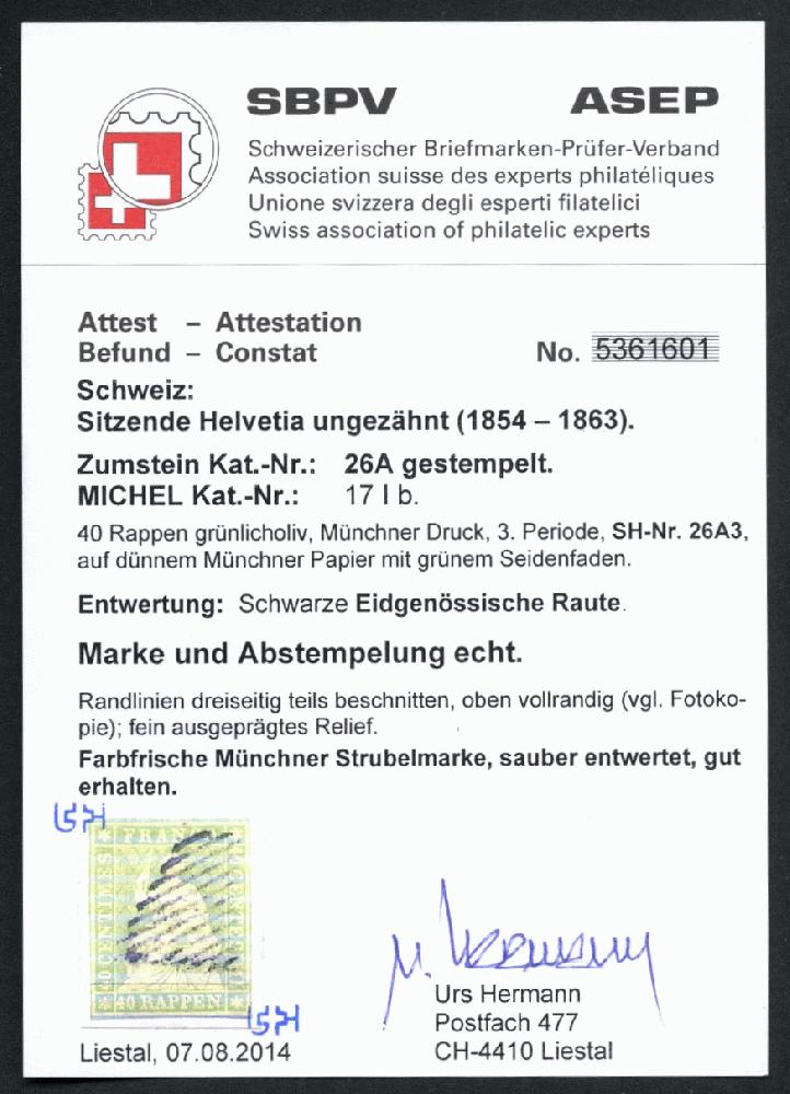 | Prüfer: | Hermann, Urs (SBPV / ASEP (Schweizerischer Briefmarken-Prüfer-Verband)) |