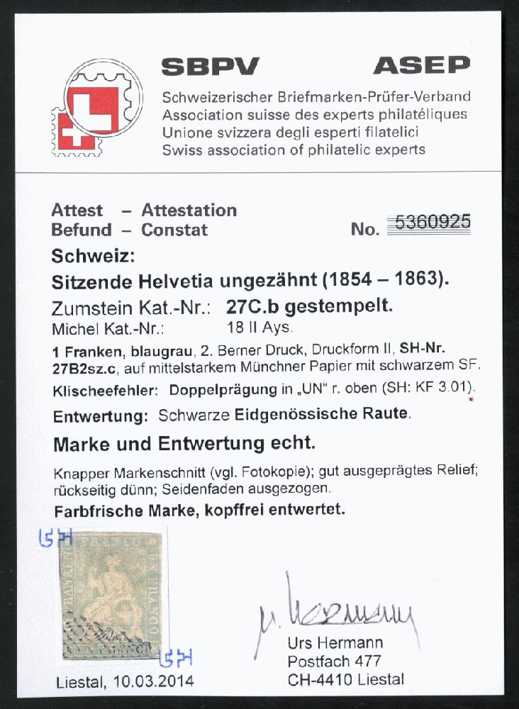 | Prüfer: | Hermann, Urs (SBPV / ASEP (Schweizerischer Briefmarken-Prüfer-Verband)) |