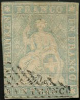 | Zusatzinformationen und Suchstichworte: | 108. Briefmarken Lenz Auktion Auktionstermin: 29. April - 5. Mai 2022 Los 2165 Schweiz 1855, 1 Fr. blaugrau, 2. Berner Druck (SH-Nr. 27B2sz.c), knapper Markenschnitt, gut ausgeprägtes Relief, rückseitig dünn, Seidenfaden ausgezogen, Klischeefehler (SH: KF 3.01), Entwertung schwarze Eidgen. Raute, farbfrische Marke, kopffrei entwertet,, siehe Attest/Befund Hermann 2014 Zuschlag 117,00 EUR |