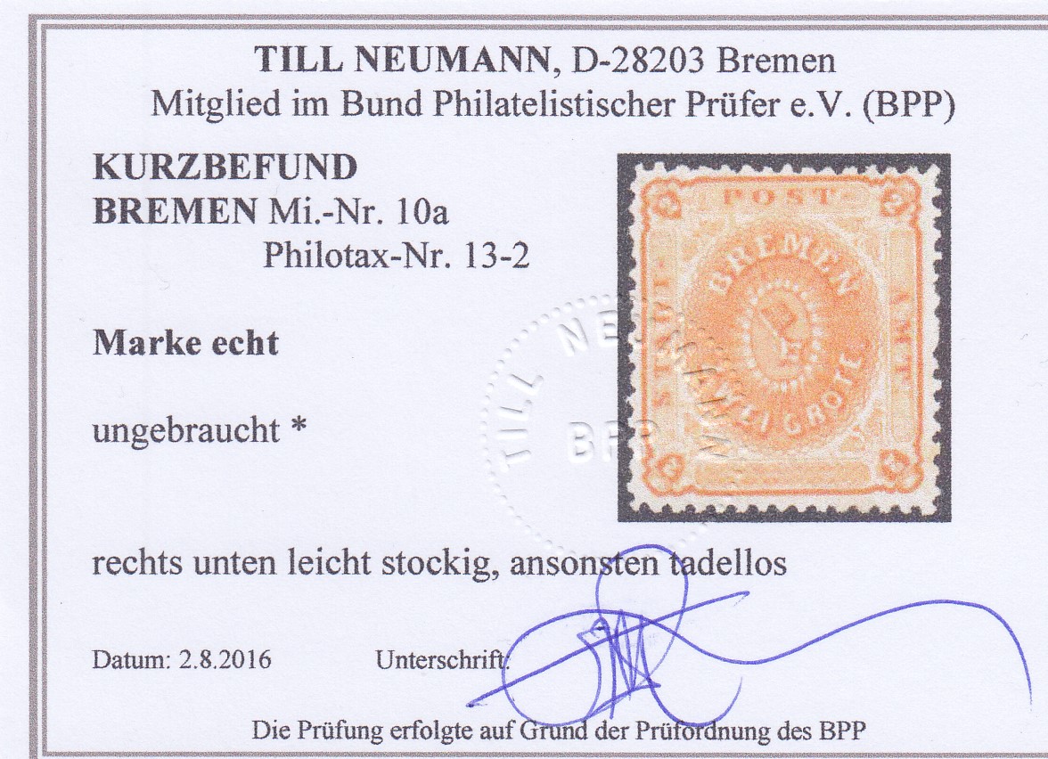 | Prüfer: | Neumann, Till (BPP (Bund Philatelistischer Prüfer)) |