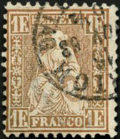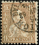 | Zusatzinformationen und Suchstichworte: | 108. Briefmarken Lenz Auktion Auktionstermin: 29. April - 5. Mai 2022 Los 2198 Schweiz 1863, 1 Fr. goldbronze rötlich, Unterdruck braunrot, sehr klar gest., sehr gut gezähnt, Eckbügli und senkr. Bugspur, farbfrisch, in gutem Farbton, Attest/Befund Hermann 2016 Ausruf 80,00 EUR |
