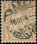 | Zusatzinformationen und Suchstichworte: | 108. Briefmarken Lenz Auktion Auktionstermin: 29. April - 5. Mai 2022 Los 2202 Schweiz 1874, 2 Rp. hellrotbraun, sehr gute Zähnung, sauber und fast zentr. gest., in fehlerfreier Erhaltung, Attest/Befund Hermann 2018 Zuschlag 54,00 EUR |