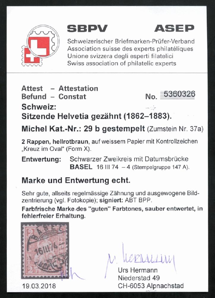 | Prüfer: | Hermann, Urs (SBPV / ASEP (Schweizerischer Briefmarken-Prüfer-Verband)) |