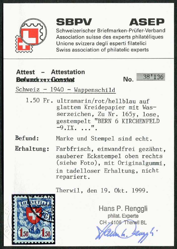 | Prüfer: | Renggli, Hans P. (SBPV / ASEP (Schweizerischer Briefmarken-Prüfer-Verband)) |