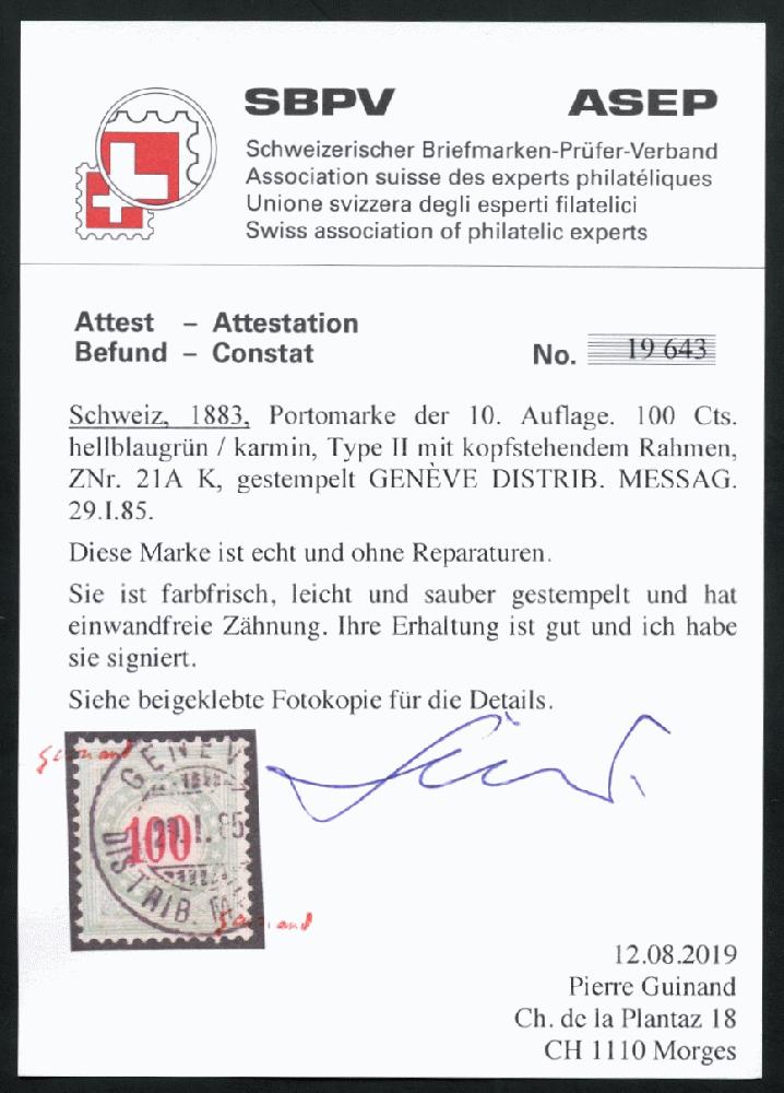 | Prüfer: | Guinand, Pierre (SBPV / ASEP (Schweizerischer Briefmarken-Prüfer-Verband)) |