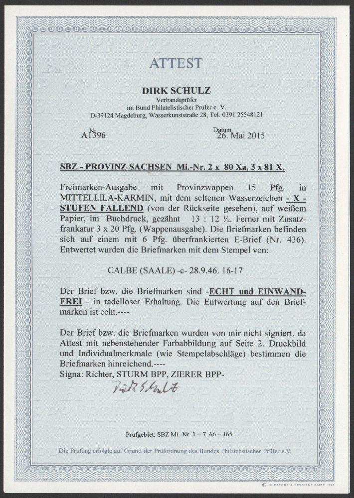 | Prüfgebiet: | Alliierte Besetzung SBZ Provinz Sachsen |
