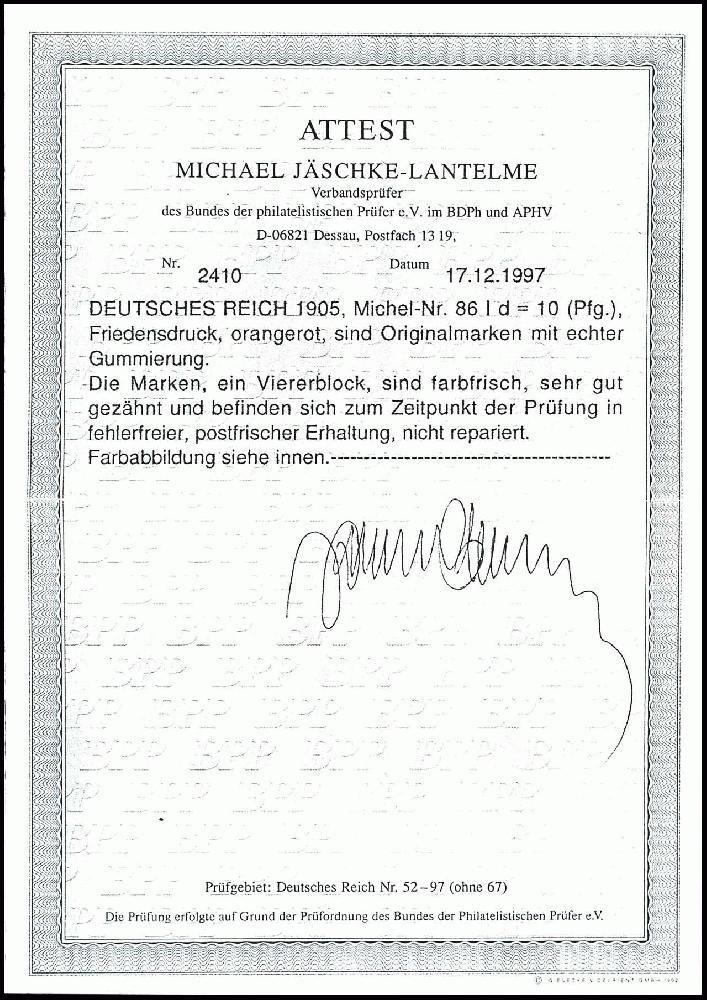 | Prüfgebiet: | Deutsches Reich 1871 - 1918 (Mi-Nr. 1 - 106) |
