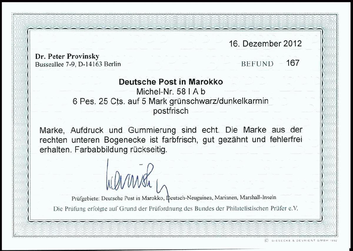 | Prüfgebiet: | Deutsche Auslandspostämter Marokko |