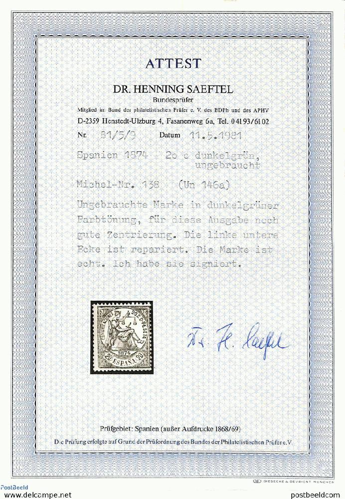 | Zusatzinformationen und Suchstichworte: | Delcampe.net Spain 1874 20c green, unused, with attest, Unused (hinged) Artikel n° #1559001742 Festpreis 125,00 EUR |