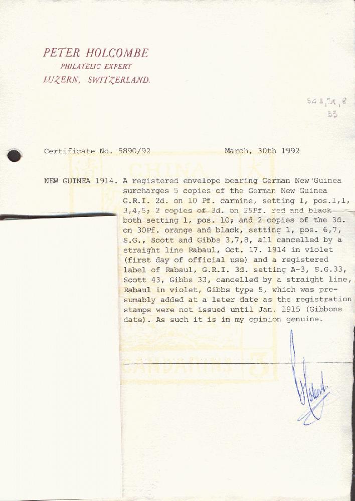 | Prüfgebiet: | Deutsche Kolonien Deutsch-Neuguinea Britische Besetzung |