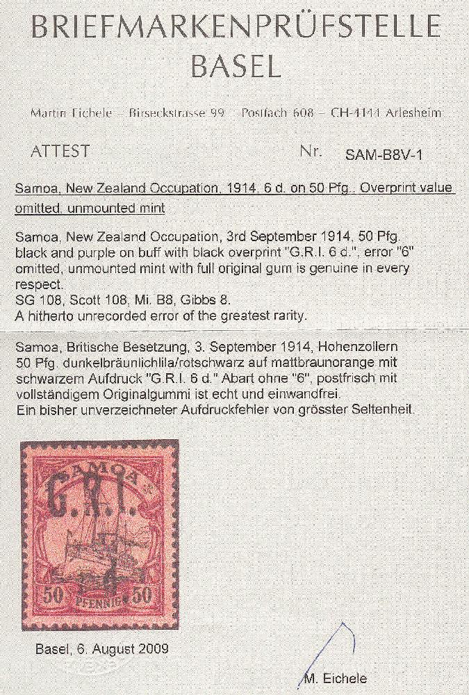 | Prüfgebiet: | Deutsche Kolonien Samoa Britische Besetzung |