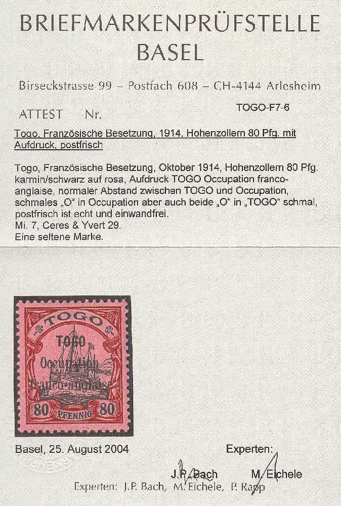 | Prüfgebiet: | Deutsche Kolonien Togo Französische Besetzung |