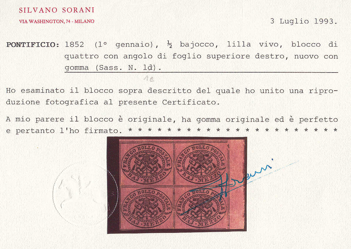 | Prüfer: | Sorani, Silvano (APFIP (Associazione Periti Filatelici Italiani Professioni.)) |