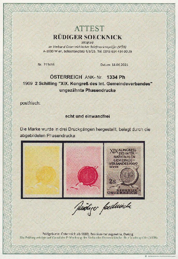 | Zusatzinformationen und Suchstichworte: | 11. Auktion Stilus Auktionstermin: 5. Juni 2022 Los 21 Österreich 2. Republik Österreich, 1969, ANK-Nr.: 1334 Ph U (Michel-Nr.: 1303), 'XIX. Kongress des Internationalen Gemeindeverbandes 1969', 2 Schilling, ungezähnte Phasendrucke (3), postfrisch **, einwandfreie Erhaltung, Attest Soecknick VÖB Ausruf 100,00 EUR |