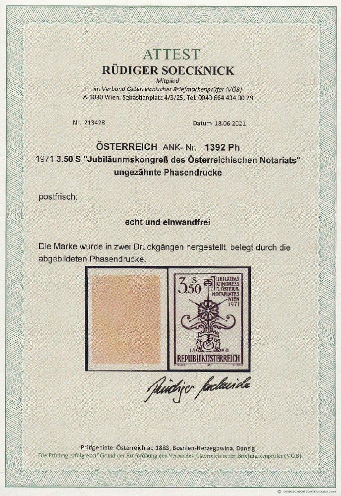 | Zusatzinformationen und Suchstichworte: | 11. Auktion Stilus Auktionstermin: 5. Juni 2022 Los 37 Österreich 2. Republik Österreich, 1971, ANK-Nr.: 1392 Ph U (Michel-Nr.: 1359), 'Jubiläumskongress des Österreichischen Notariates, Wien 1971', 3,5 Schilling, ungezähnte Phasendrucke (2), postfrisch **, einwandfreie Erhaltung, Attest Soecknick VÖB Ausruf 100,00 EUR |