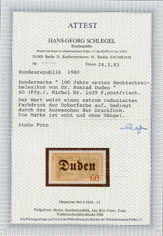| Prüfer: | Schlegel, Hans-Georg (BPP (Bund Philatelistischer Prüfer)) |