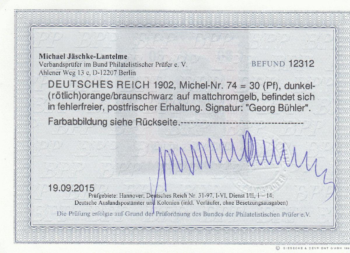 | Prüfgebiet: | Deutsches Reich 1871 - 1918 (Mi-Nr. 1 - 106) |