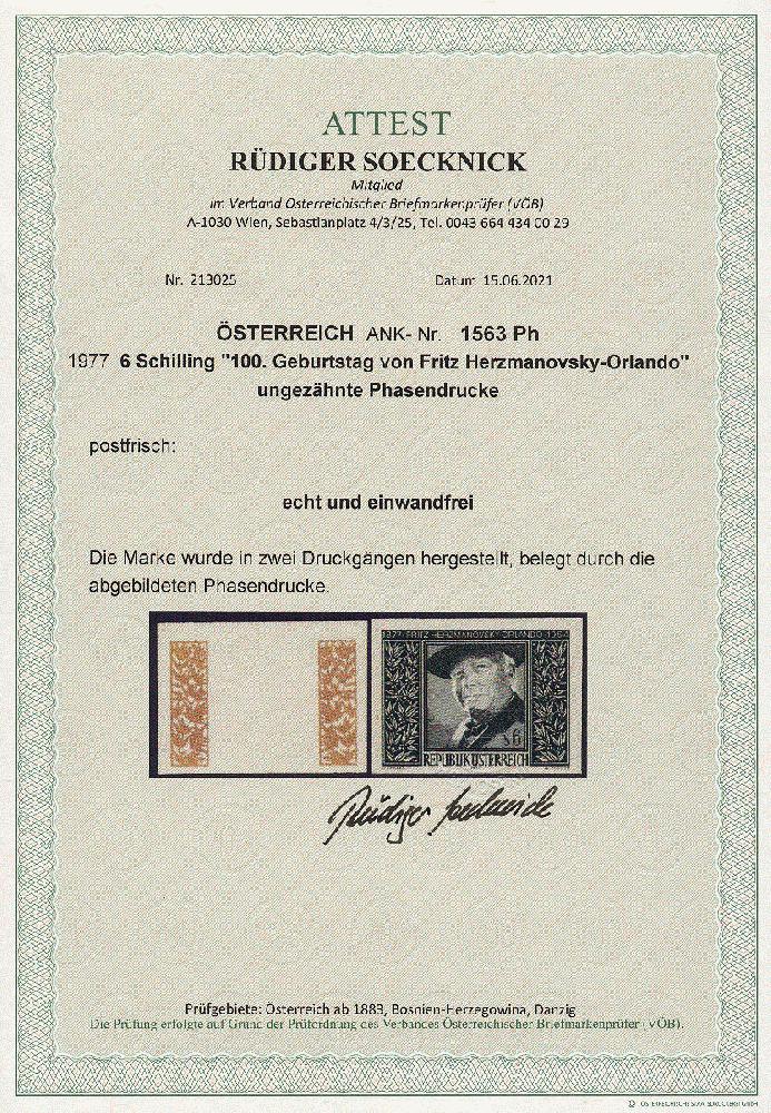 | Zusatzinformationen und Suchstichworte: | 11. Auktion Stilus Auktionstermin: 5. Juni 2022 Los 81 Österreich 2. Republik Österreich, 1977, ANK-Nr.: 1563 Ph U (Michel-Nr.: 1547), '100. Geburtstag von Fritz Hermanovsky-Orlando', 6 Schilling, ungezähnte Phasendrucke (2), postfrisch **, einwandfreie Erhaltung, Attest Soecknick VÖB Ausruf 100,00 EUR |