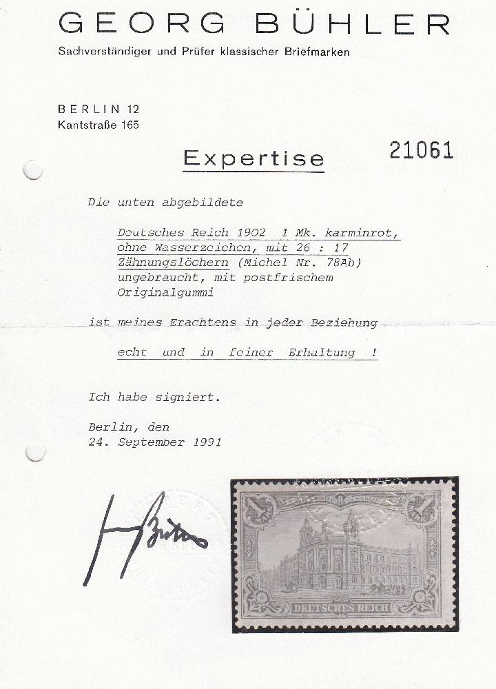 | Prüfgebiet: | Deutsches Reich 1871 - 1918 (Mi-Nr. 1 - 106) |
