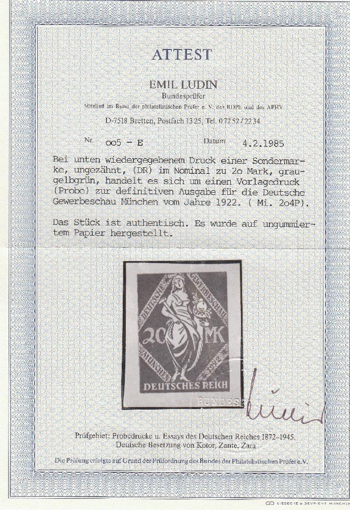 | Prüfgebiet: | Deutsches Reich Specimen, Probedrucke, Essay, Maschinenprobe |