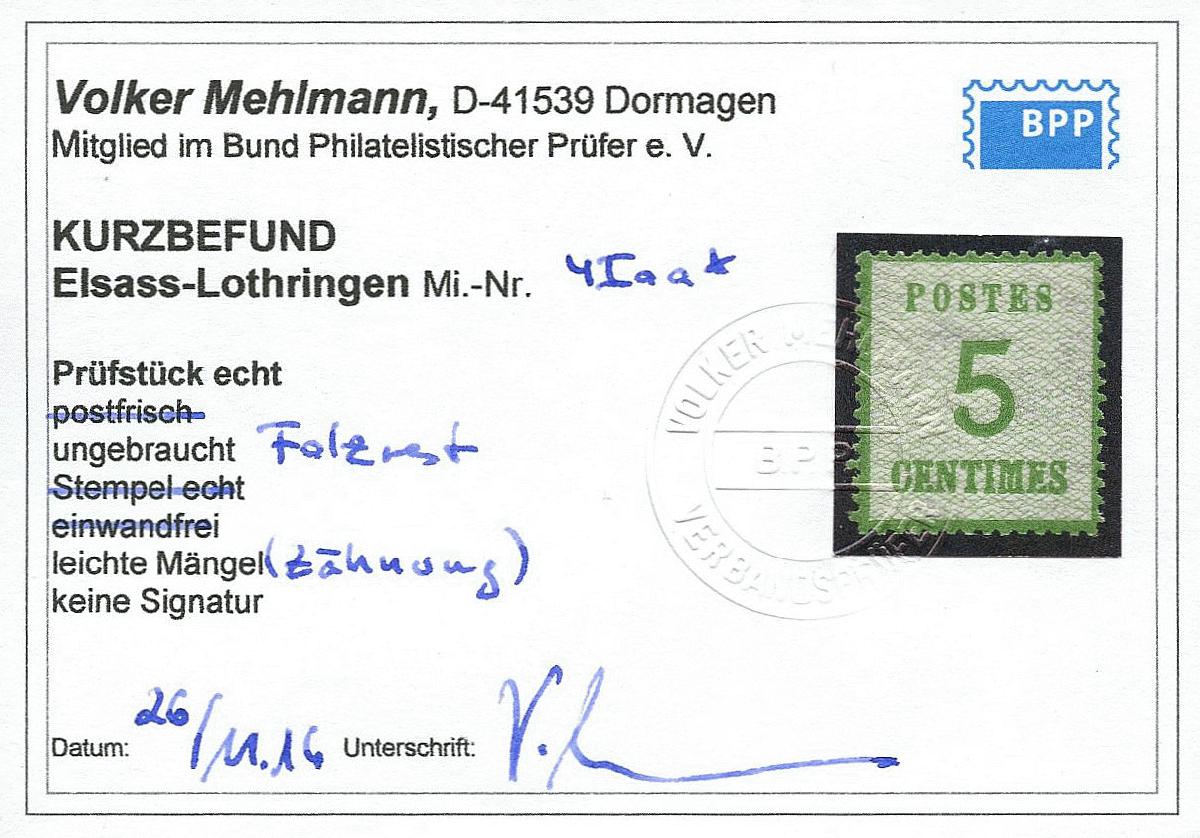 | Prüfgebiet: | Norddeutscher Postbezirk 1870 - 1871 Elsass-Lothringen |