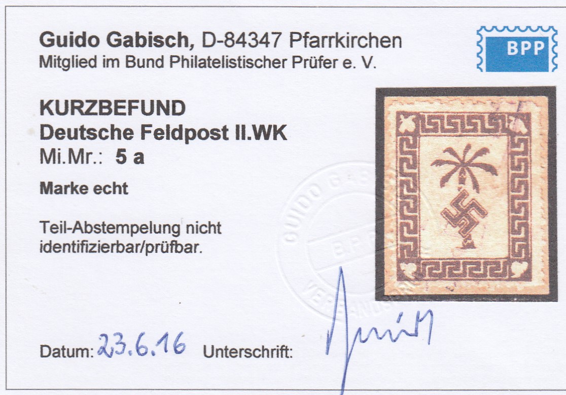 | Prüfgebiet: | Deutsches Reich Feldpost WK 2 |