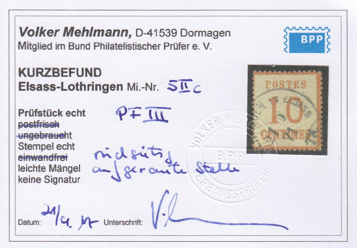 | Prüfgebiet: | Norddeutscher Postbezirk 1870 - 1871 Elsass-Lothringen |