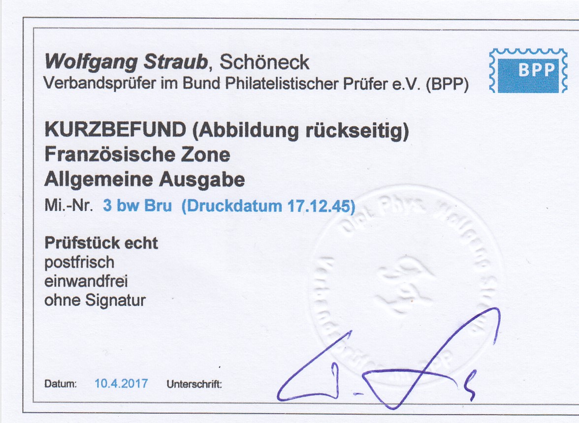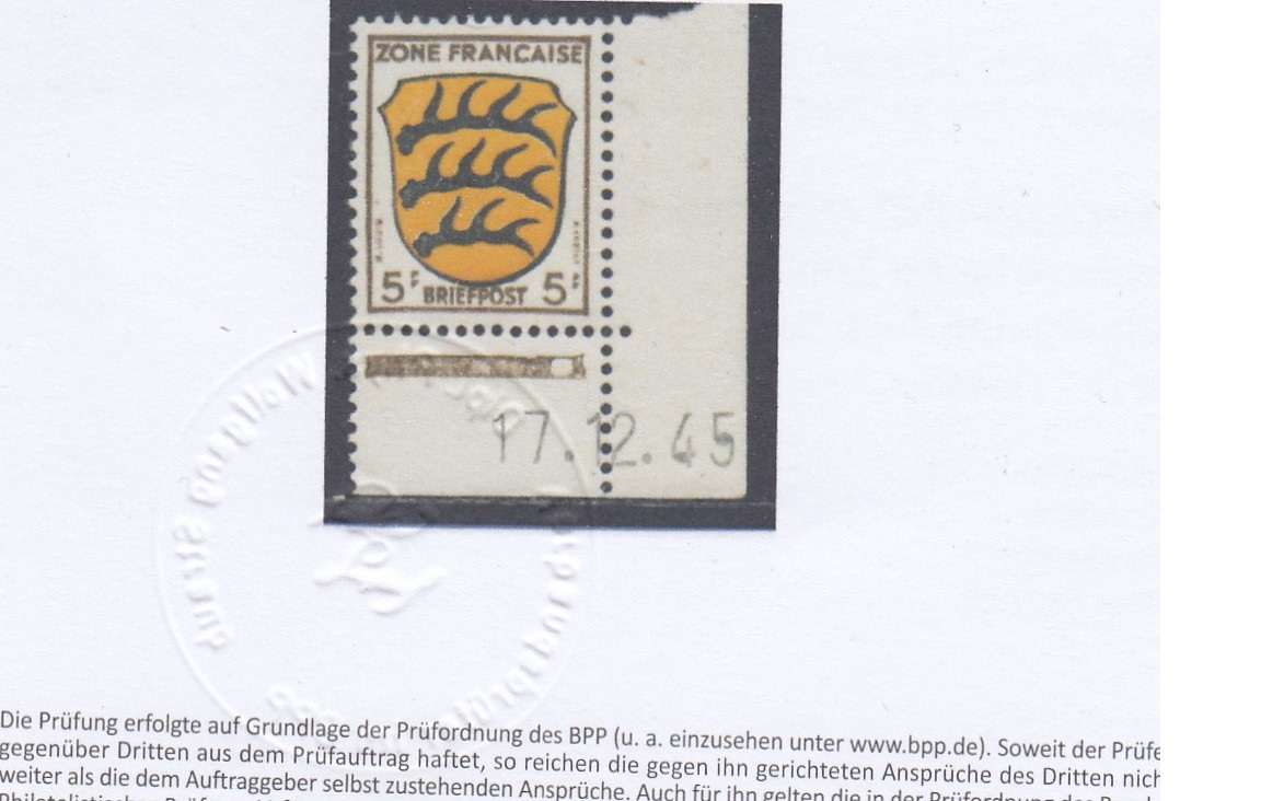 | Prüfgebiet: | Alliierte Besetzung Französische Zone Allgemeine Ausgaben |