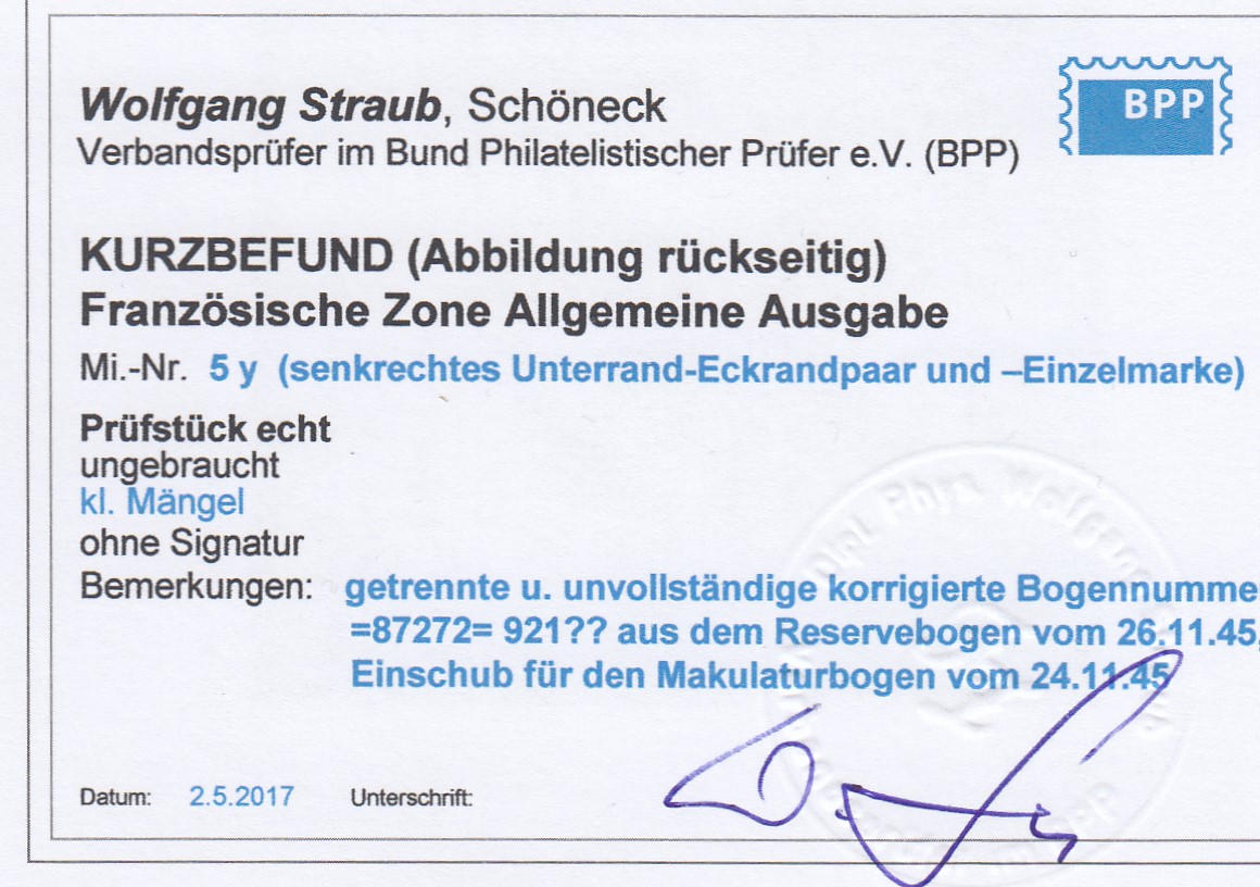 | Prüfgebiet: | Alliierte Besetzung Französische Zone Allgemeine Ausgaben |