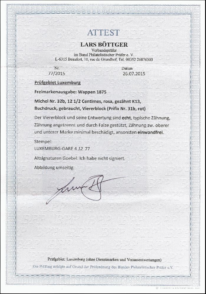 | Prüfer: | Böttger, Lars (BPP (Bund Philatelistischer Prüfer)) |