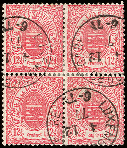 | Zusatzinformationen und Suchstichworte: | Zweite Auflage, Farbe: rot, nicht rosa. Einzig bekannter gebrauchter Viererblock dieser Auflage. Provenienz: Woudenberg, J. L. Van Dieten 420, 3.-5. April 1967, Los 1246; Isac Seligson, Corinphila 68, 25.-30. Oktober 1982, Los 5369 (rückseitig noch vermerkt). |