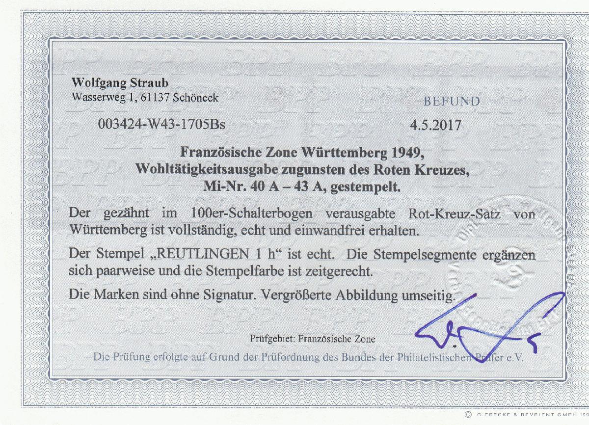 | Prüfgebiet: | Alliierte Besetzung Französische Zone Württemberg |
