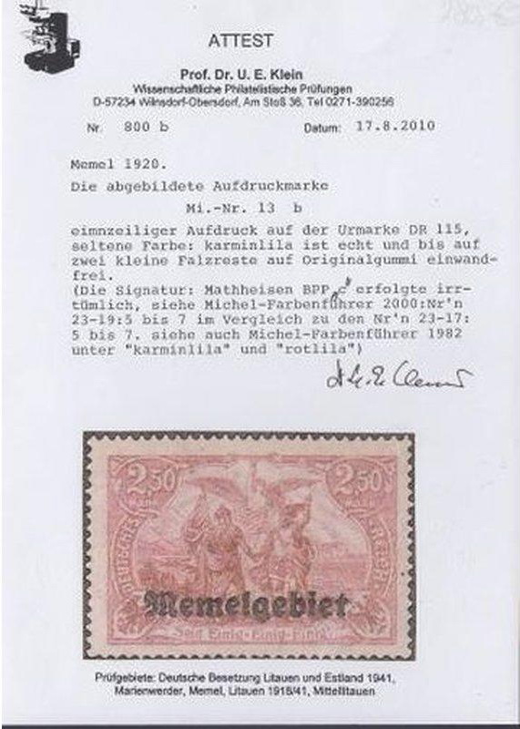 | Zusatzinformationen und Suchstichworte: | Büteröwe Webshop Los 8186 (D) Memel Memel 1920 Mi. Nr.13 b * geprüft/Attest Sauber ungebraucht geprüft mit Attest echt uns einwandfrei Festpreis 99,90 EUR |