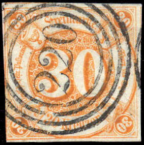 | Zusatzinformationen und Suchstichworte: | 74. Badische Briefmarken GmbH Auktion Los 1460 D Altdeutschland Thurn und Taxis 1859, 30 Kr. orange, farbintensives gestempeltes Prachtstück in üblichem Schnitt mit klarem RNS "220", gepr. und Attest Haferkamp BPP (ME 320,-) GEBOT |