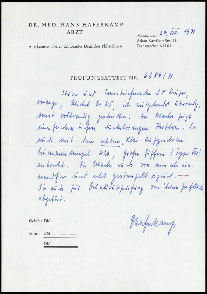 | Prüfer: | Haferkamp, Hans (BPP (Bund Philatelistischer Prüfer)) |
