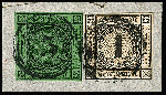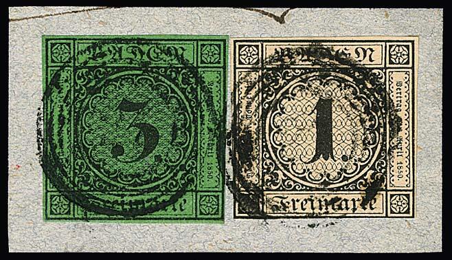 | Zusatzinformationen und Suchstichworte: | Rauhut & Kruschel - 212. Auktion Auktionstermin: 30. Juli 2022 Los 44 Altdeutschland Baden 1 Kr. schw./sämisch, 1. Auflage, in seltener Mischfrankatur mit 3 Kr. schw./grün auf Prachtbriefstück mit NS "27" von Donaueschingen, nur die 1 Kr. ist unten leicht berührt. Attest Stegmüller: "Farbfrische und ursprüngliche, tadellose Erhaltung. Bei der Vorlage handelt es sich um eine sehr seltene Frankaturkombination" Ausruf 500,00 EUR |