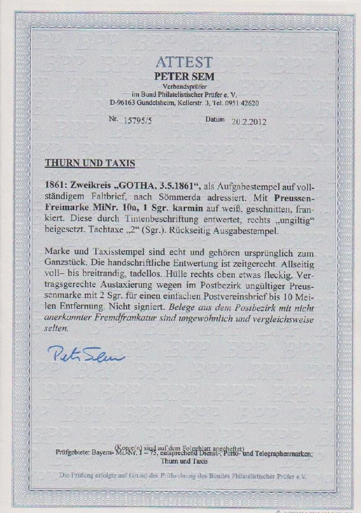 | Prüfgebiet: | Altdeutschland Thurn und Taxis |