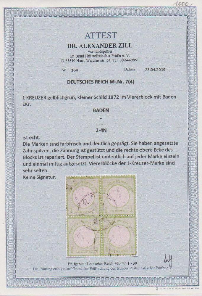 | Zusatzinformationen und Suchstichworte: | Rauhut & Kruschel - 212. Auktion Auktionstermin: 30. Juli 2022 Los 2487 Deutsches Reich 1 Kr. grün, äusserst seltener und nur in wenigen Exemplaren bekannter, leicht gestempelter Viererblock (kleine Reparaturen), Attest Dr. Zill. Mi. 2800,- Ausruf 450,00 EUR |