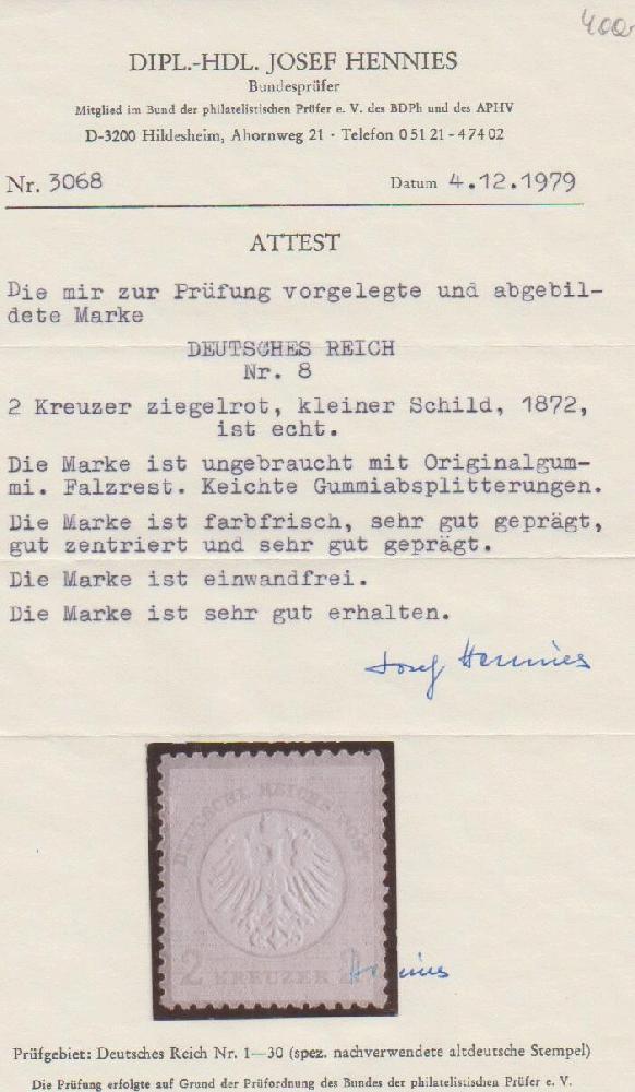 | Prüfgebiet: | Deutsches Reich 1871 - 1918 (Mi-Nr. 1 - 106) |