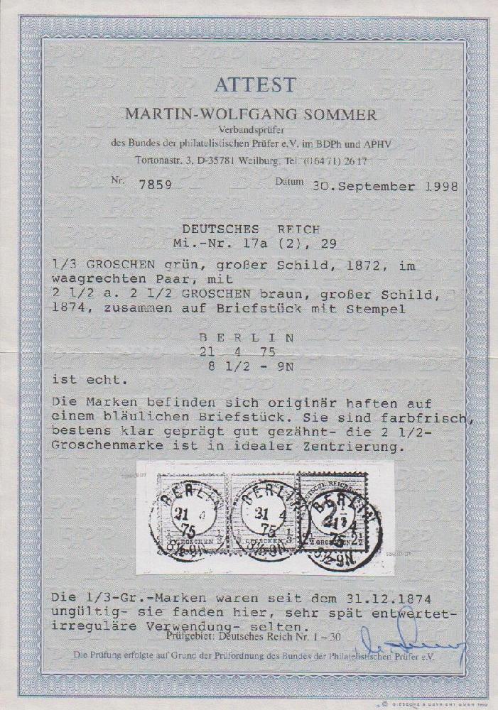 | Prüfer: | Sommer, Martin-Wolfgang (BPP (Bund Philatelistischer Prüfer)) |