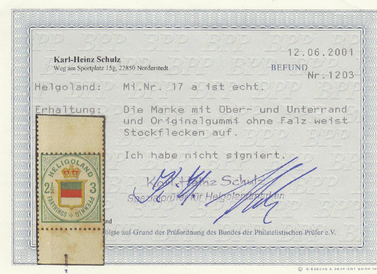 | Prüfer: | Schulz, Karl-Heinz (BPP (Bund Philatelistischer Prüfer)) |